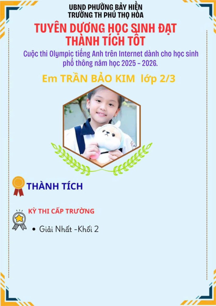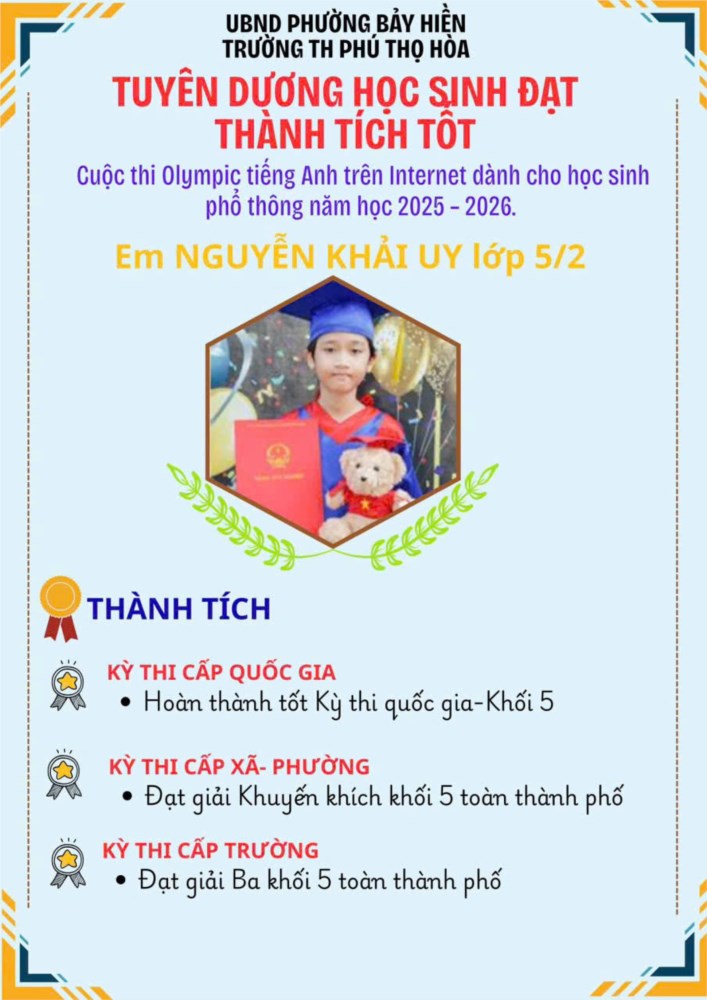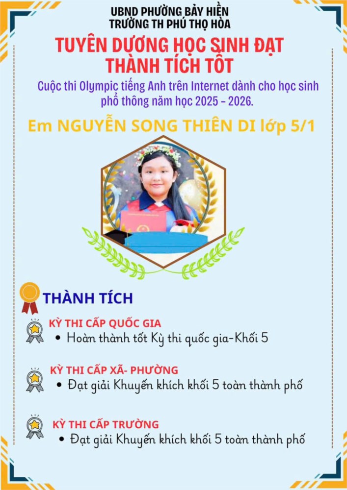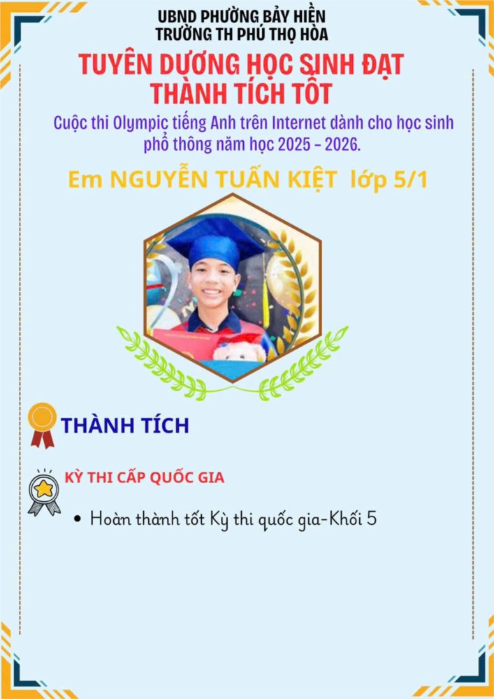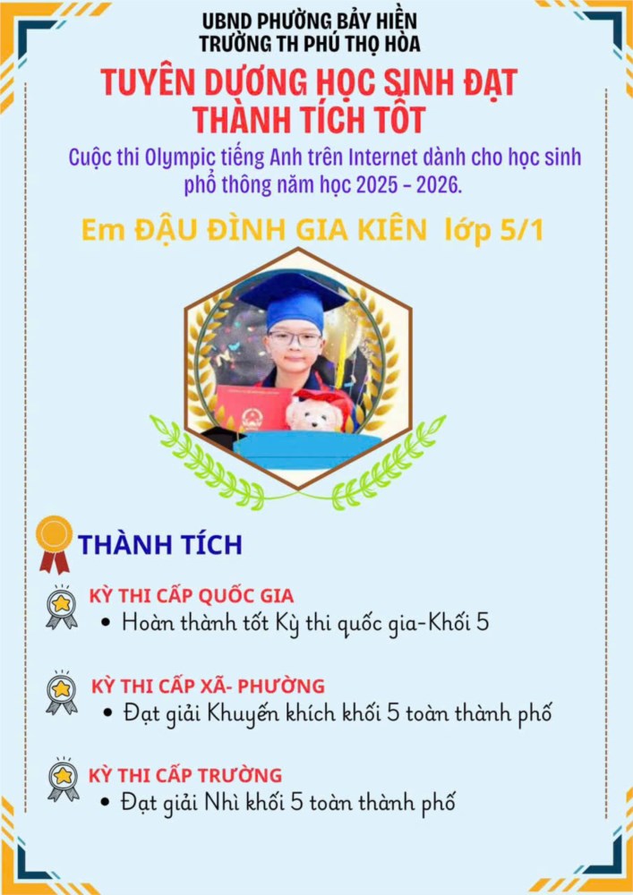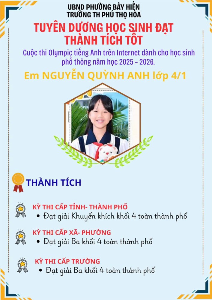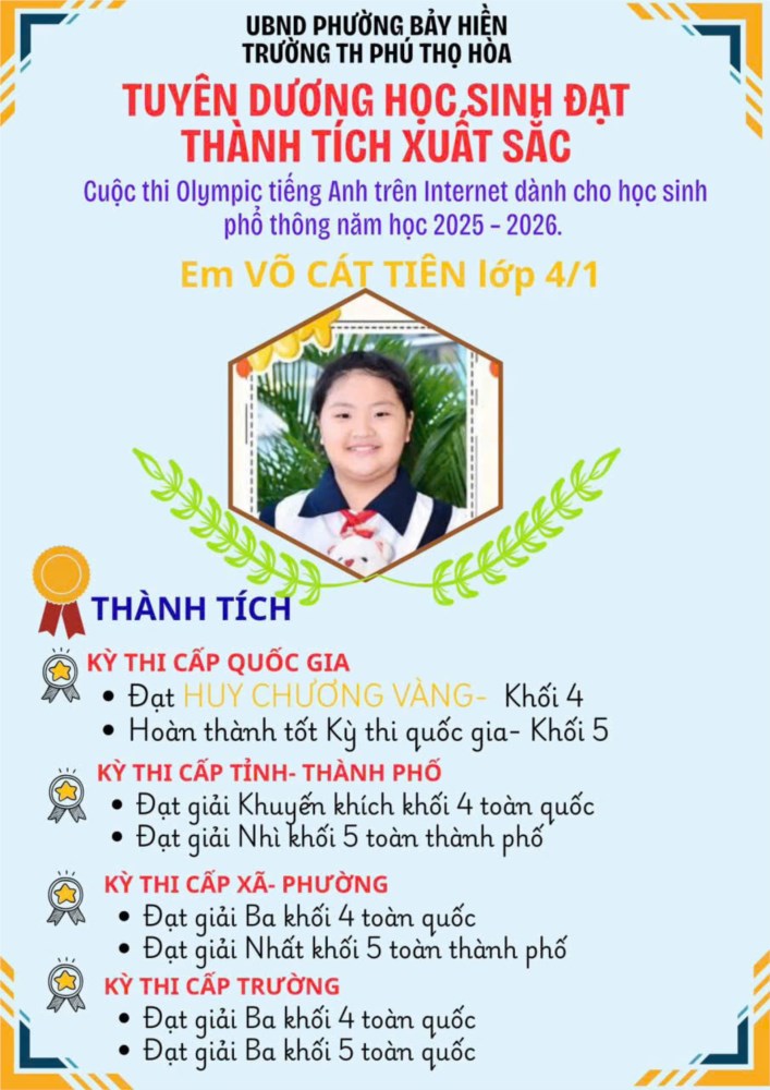 Hoà trong không khí thi đua học tập sôi nổi, Trường Tiểu học Phú Thọ Hòa phấn khởi chúc mừng và thông báo: